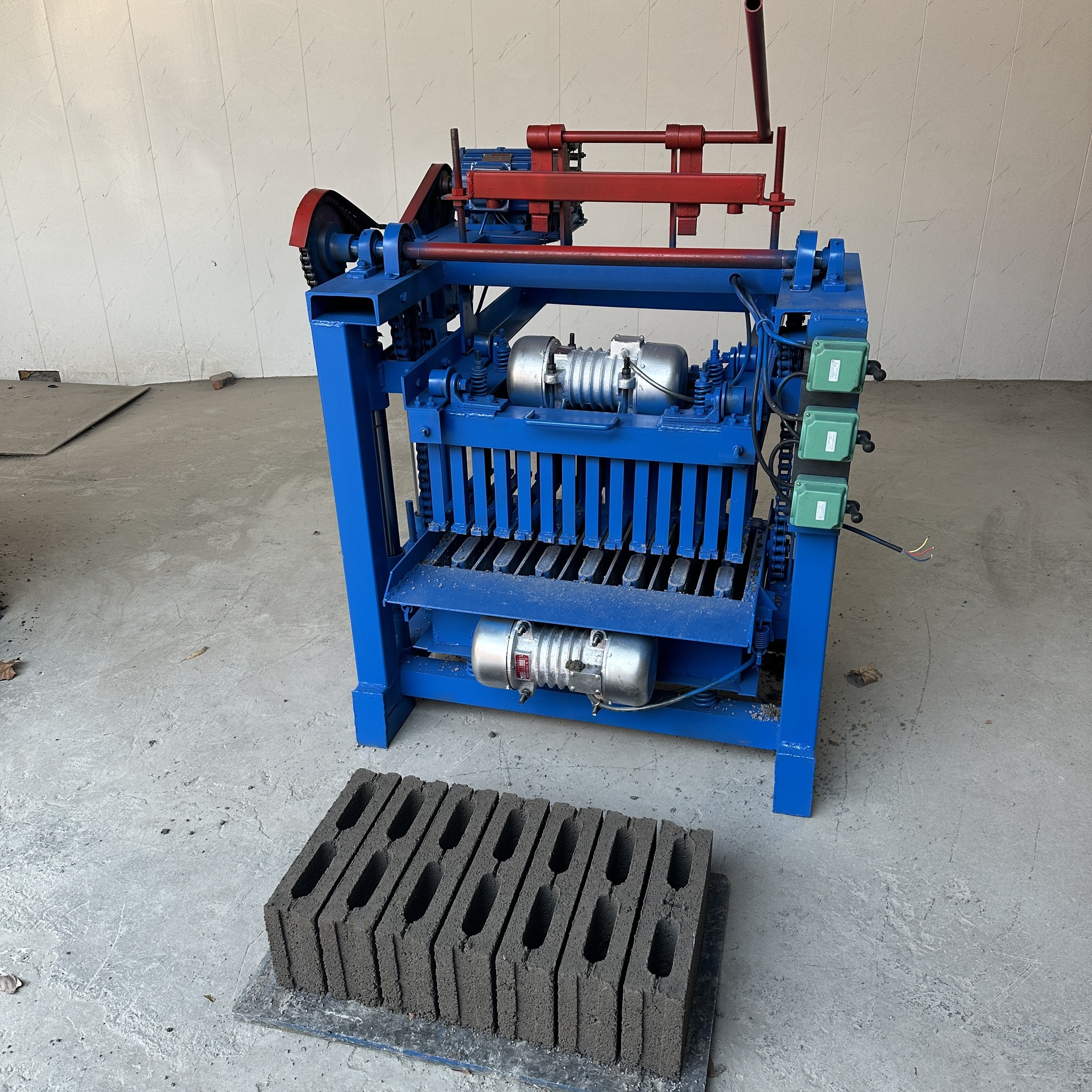 This electric brick-making machine comes with a fixed mould and a vibrating motor. The moulds available are for making stock bricks, maxi bricks, v-blocks and hollow blocks.
